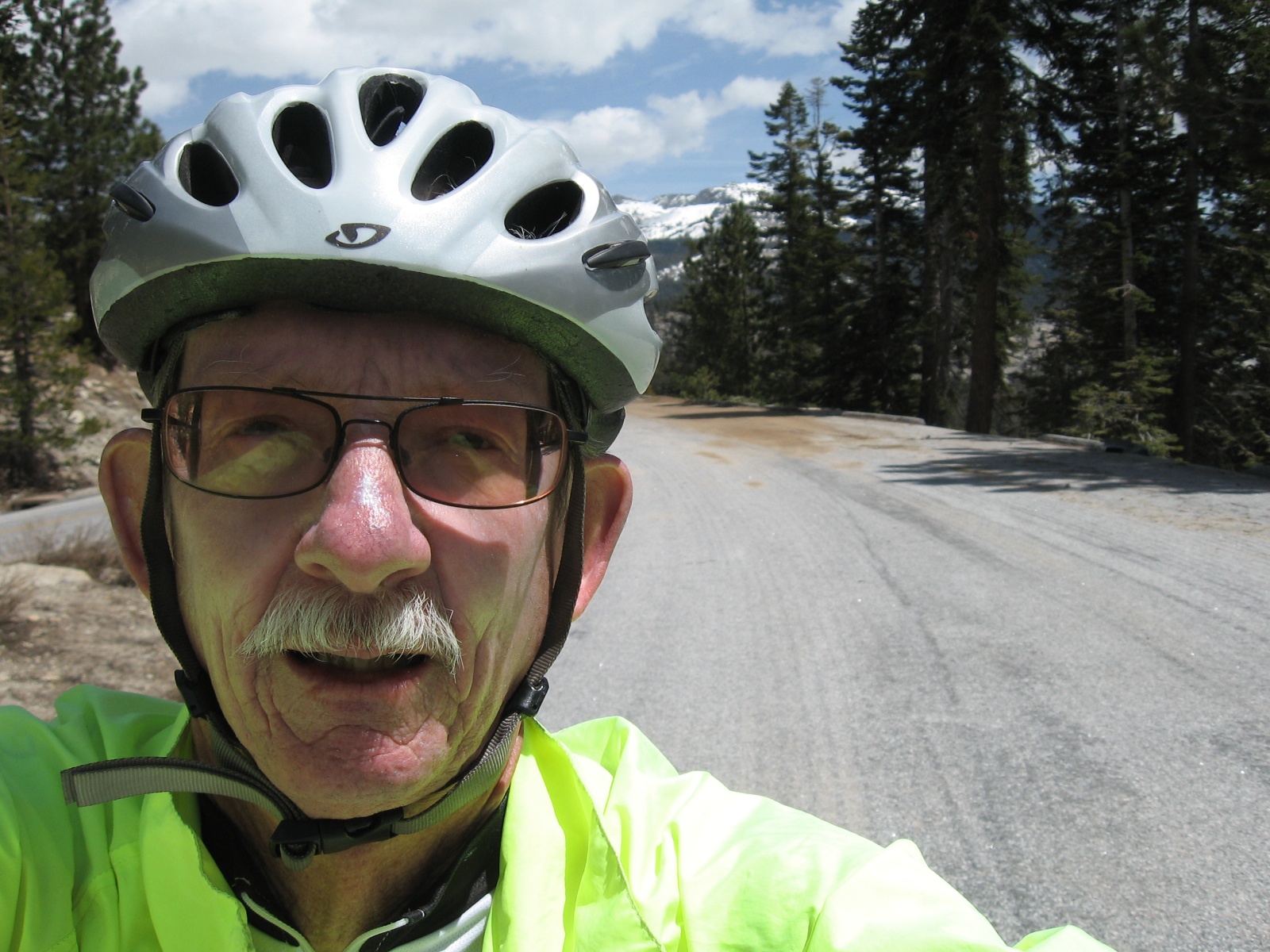 The temperature was nice (in the low 60’s) and sunny in the morning. By mid-afternoon the clouds were building and I was afraid I might get a little rain shower. The road was clean and dry except for where repair work was being done and they had scraped debris out of the edge of the road onto the road surface and were scooping it up with a skip-loader. I had about 2 miles of this and luckily didn’t pick up any sharp objects in the tires. Other than the road crews and a ranger patrol I only met 2 other cyclists.