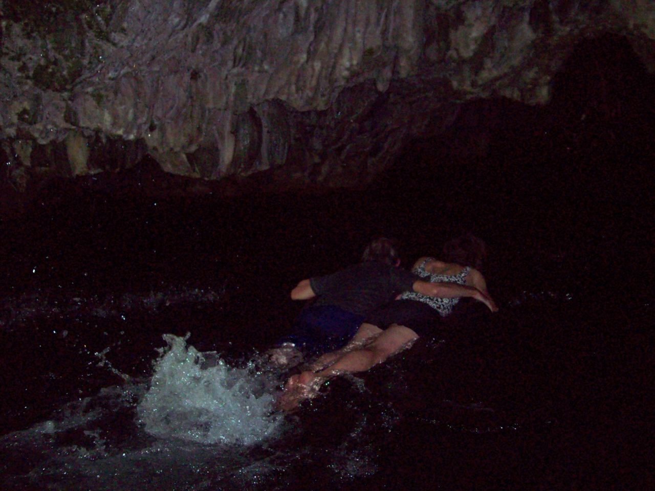 We drove back down to Parrot’s Ferry road (almost back to Angels Camp) and hiked down to the natural bridge, which is more like a cave with a creek running through it. Dan has wanted us all to go there for years, so I’m glad we finally accomplished it. We swam through and back a couple of times (it is over my head in several places), and it was pretty cold. Carolyn and Elizabeth could tolerate being tummy deep in it for about a minute before they began to really shiver.