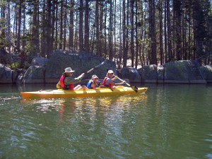 With Mark and Annmarie, we rented two tandem open cockpit kayaks and went paddling on Utica Reservoir. Cortnie and Audree sat in the center of each kayak, and Chase sat in Annmarie’s lap. The lake has several islands, and we paddled around them, landing every so often for lunch and a geocache hunt. We all had fun.