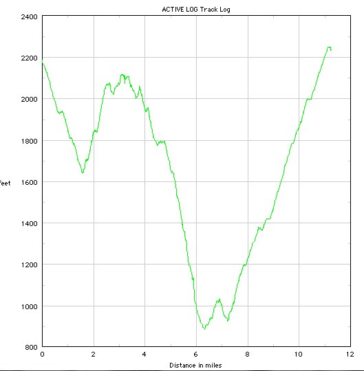 There’s a puzzling discrepancy with my GPS data. When I finished, my odometer read 7.73 miles. But when I look at the track log, and run an elevation profile on it, I get 11 miles.