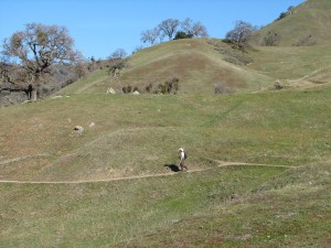 Dan and I went caching in Sunol Regional Park today. Our original target was the Maguire Peaks area, but there was a possibility of being the first to find a cache in the Little Yosemite area, so we hiked there first. Another cacher found it earlier in the morning. It was a very pleasant day (shirtsleeve temperatures) and the grass was starting to green up nicely.