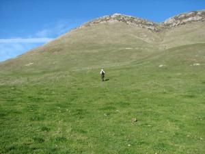 One of our goals was this peak—actually a string of three peaks—but this was the tallest one. It’s rocky around the top, and there are some small cliffs.