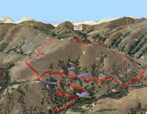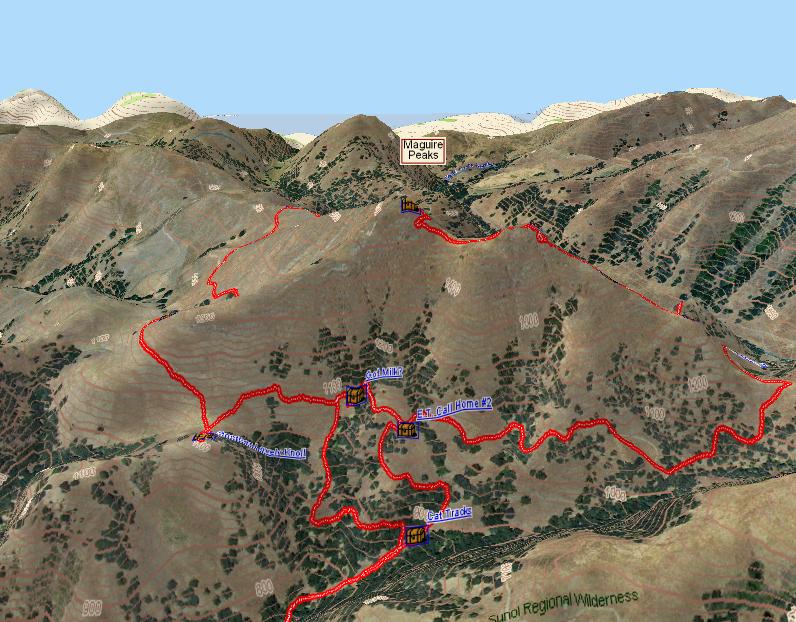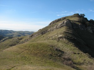 Geotagging photos would be a great help, and I’d like to do that, but I’m not there yet. I think the spot referred to is at N37° 32.66 W121° 49.818. Taking the Lower Maguire Peaks trail (single track) it would be around 1 to 1.5 miles in, depending on how much bushwhacking you do. The shortest of course would be the steepest, but I don’t think it would cause you a problem.