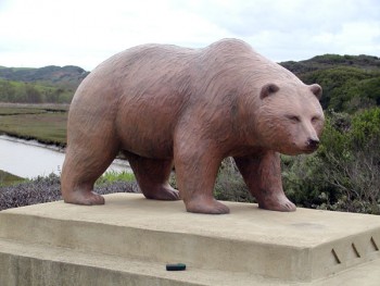 Bear Behind seemed like it would be easier; at least it was a short walk. There is a large bear statue right at the entrance to Los Osos. Dan found the cache close by the statue at 2:08 PM.