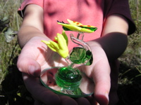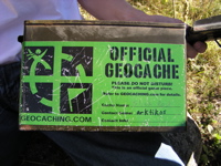 Four of us went up the hill, and the ammo can cache was spotted in short order. Cortnie took a glass butterfly and left a hot wheels car we found hidden away in the house we were staying in.