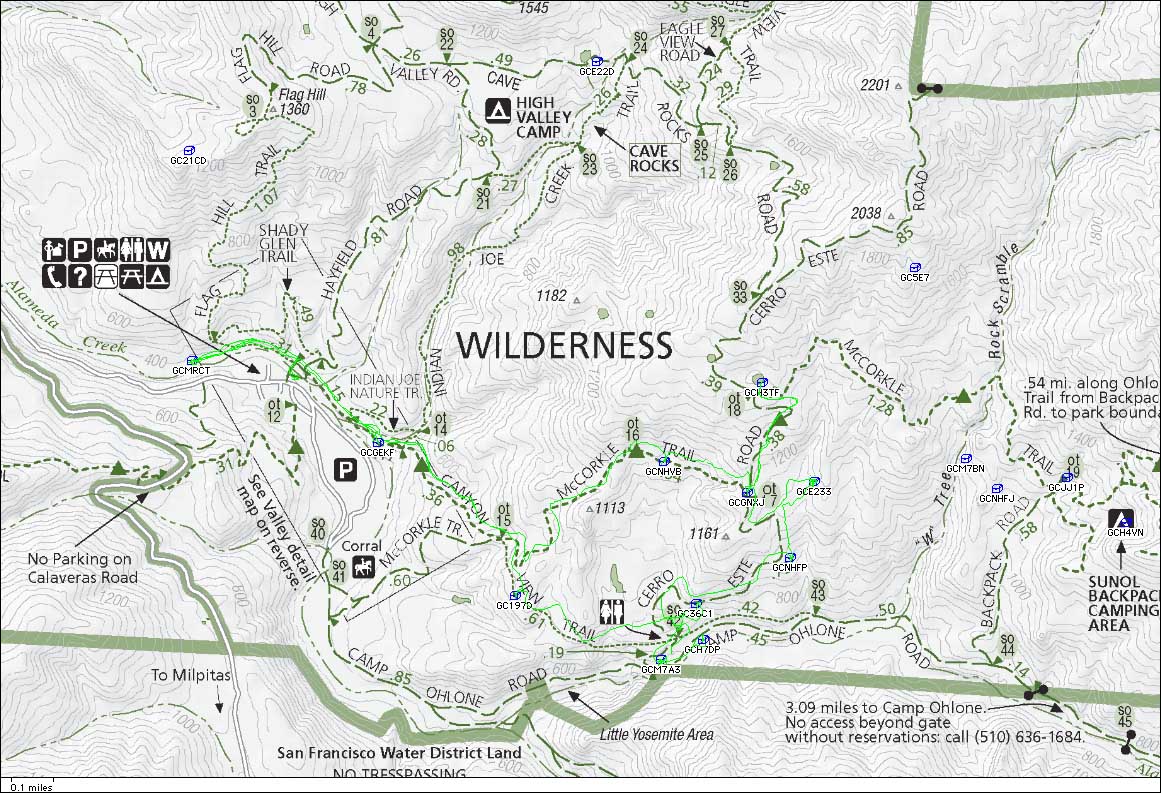 I went to Sunol Regional Park for the day, with the intent of finding maybe a dozen caches on a big loop hike. I only found 9. In general, I had to do quite a bit of searching (several were micros). After 4 hours I noted that I had been moving for 2 hours, and stationary (searching) for 2 hours.