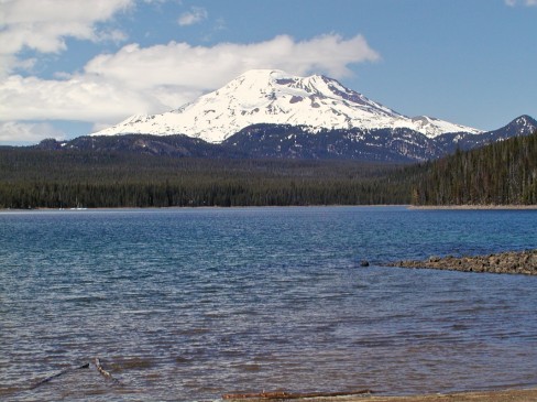 This photo of South Sister is taken from the south end of Elk Lake. The peak has an elevation of 10,358 ft. I’ve never been higher than about 8,000 ft on its eastern flank. Photo from June, 2004.