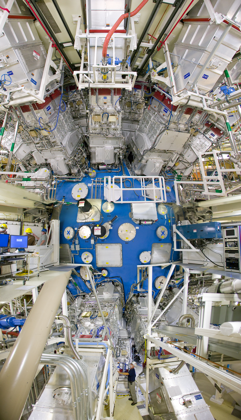 NIF major milestone completedThis is an amazing photo of an amazing facility–the target chamber of the National Ignition Facility at Lawrence Livermore National Laboratory. In late February, all 192 laser beams were fired simultaneously, basically completing the construction of the facility. The pride and sense of accomplishment the engineers and scientists who built it must feel is well deserved.